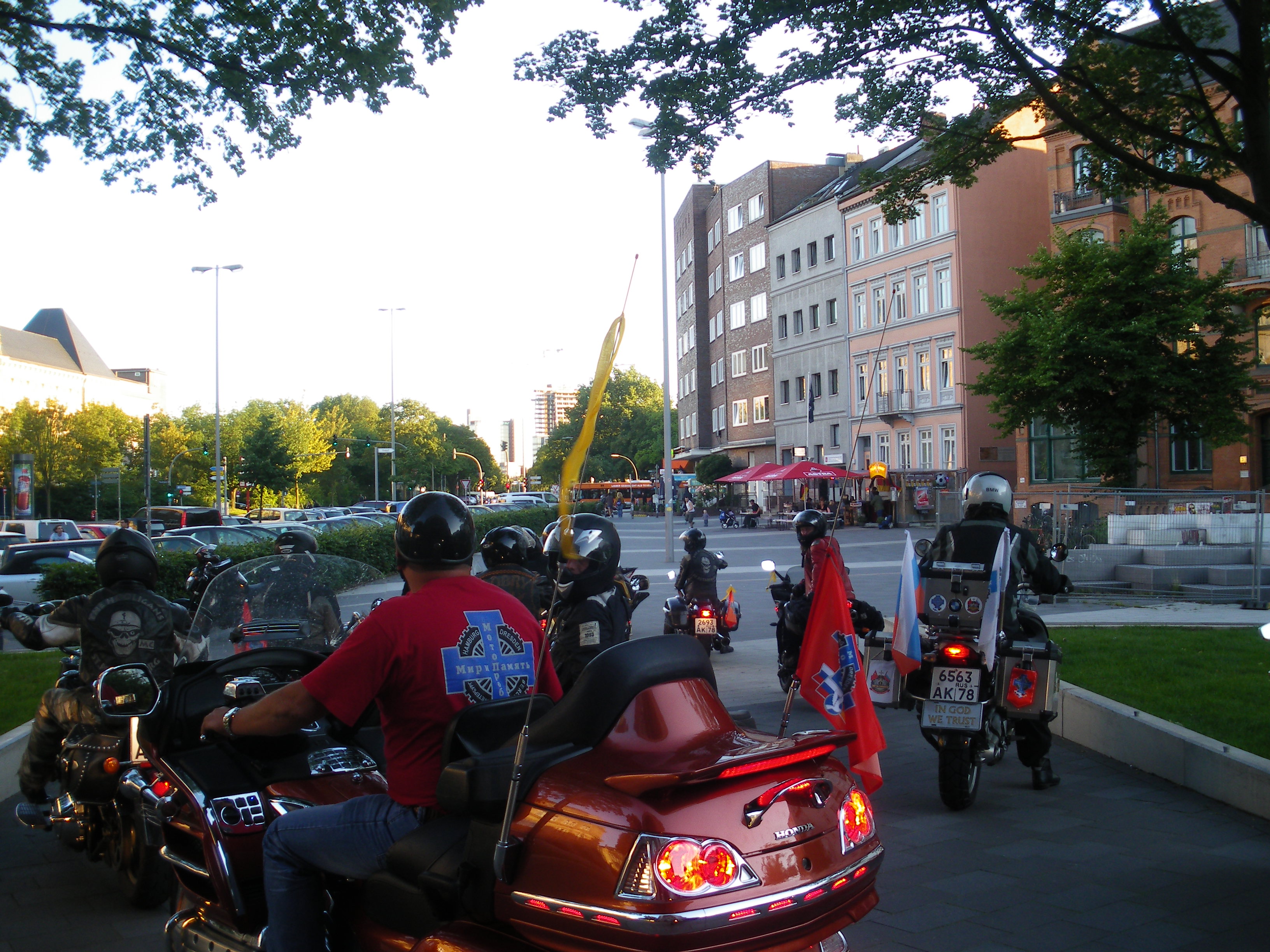 Сайт Мотомания сообщает: Мотопробег “Мир и Память” начнётся в г. Гамбурге. Здесь на ежегодной многотысячной акции Mogo участников мотопробега будут приветствовать немецкие байкеры и мотоциклисты. Впервые такая внушительная официальная делегация из России примет участие в таком масштабном европейском мотоциклетном событии.