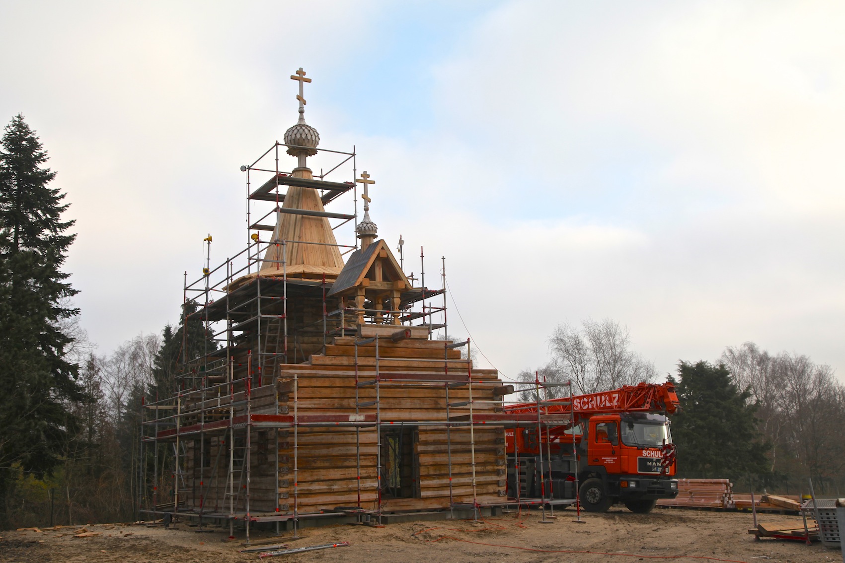 Проводив страшный ураган «Ксавьер», так напугавший всех в Гамбурге, наши мастера и добровольцы сооружающие деревянный храм, на радостях установили звонницу.